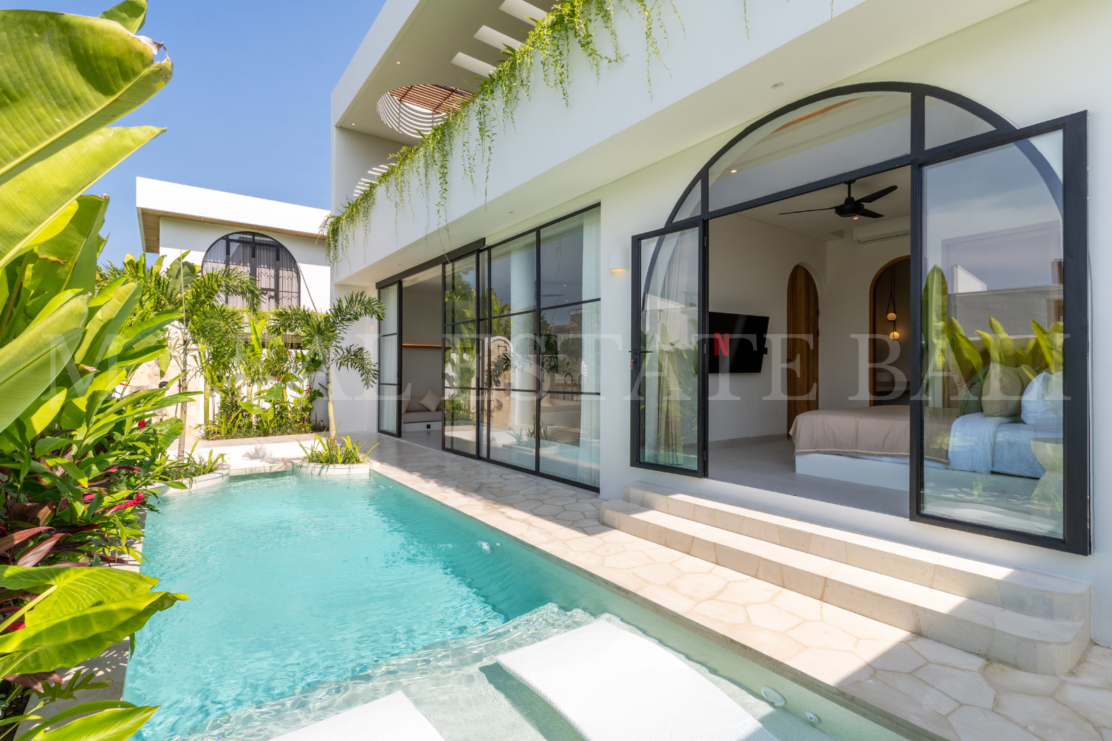 Large glass windows fill the villa with natural light, enhancing its modern, elegant atmosphere.Private Scooter/Bike Parking & Premium Construction: