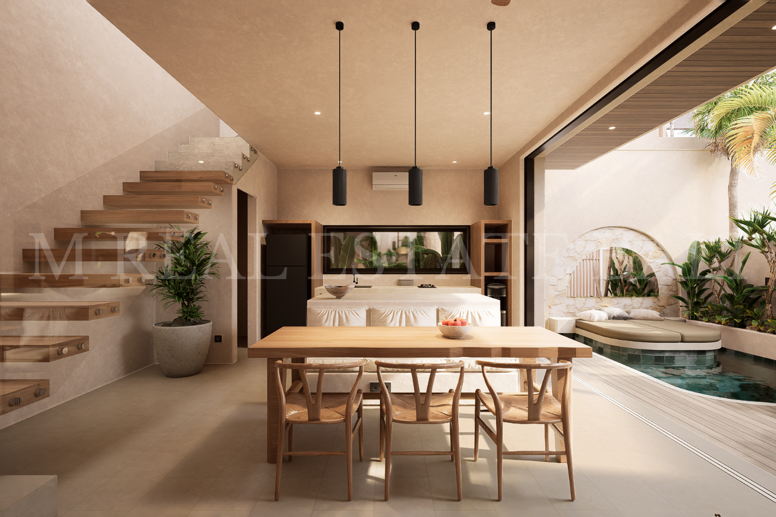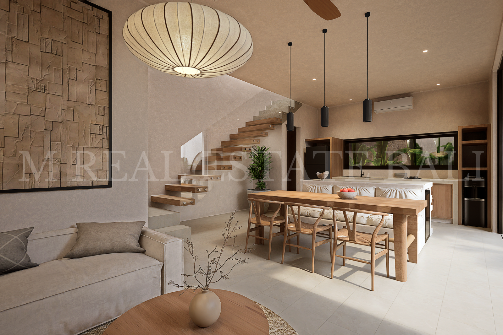Wabi-Sabi Design Aesthetic: Built in a warm Wabi-Sabi style, the villas embrace natural materials, organic textures, and a calming, minimalist palette that reflects timeless design.