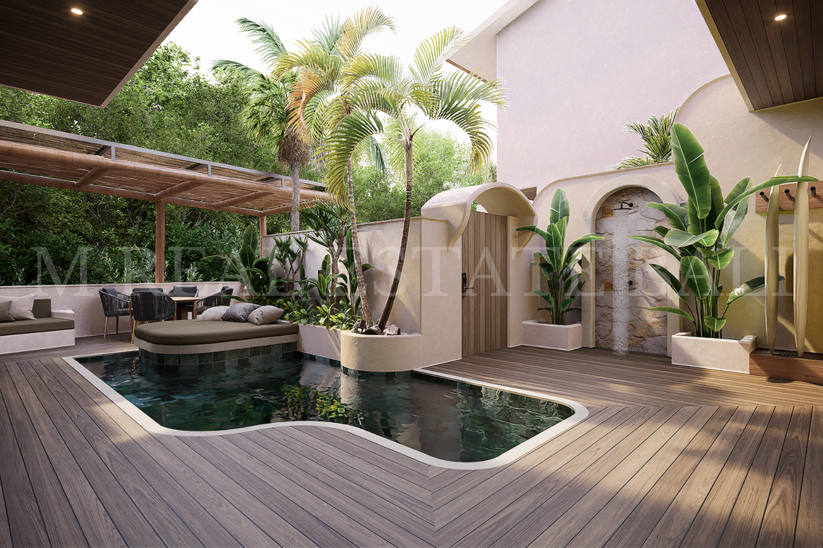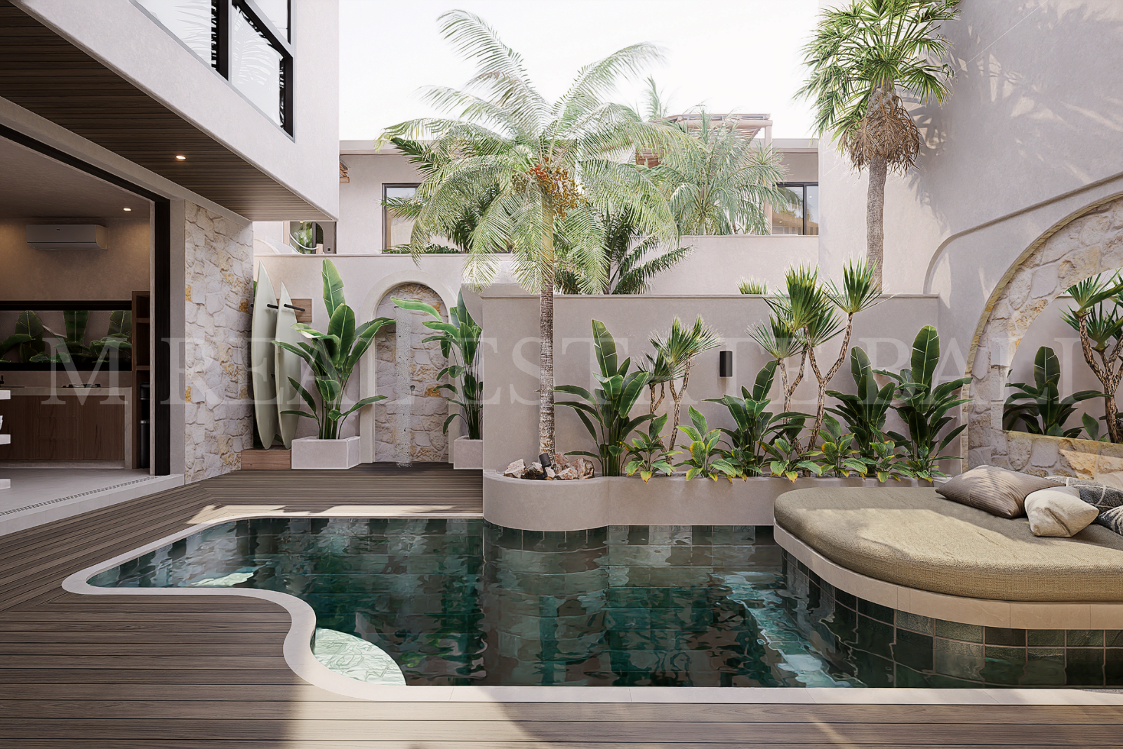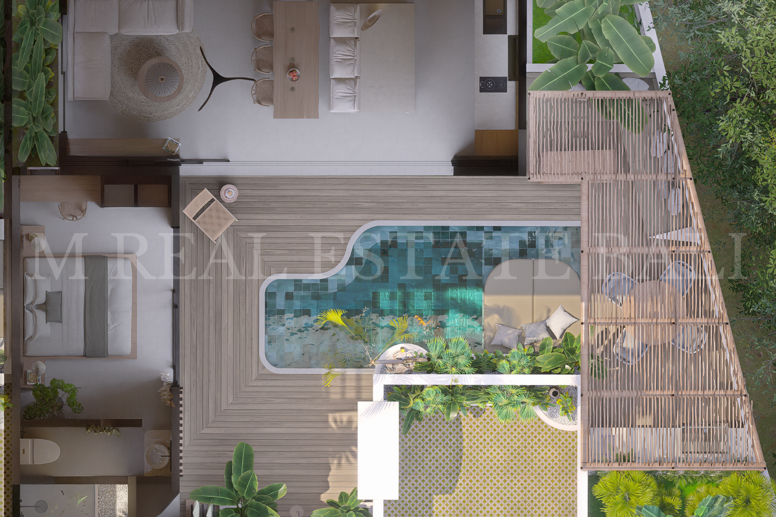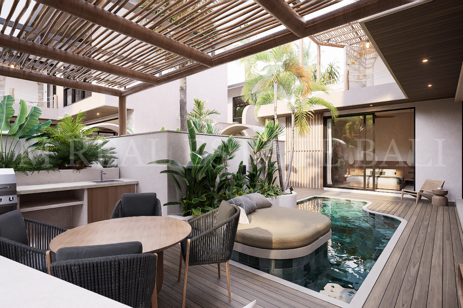 Private Pool & Tropical Outdoor Space: Enjoy your own private swimming pool, complete with a pool deck and lush tropical garden, offering a tranquil setting that blends indoor and outdoor living.