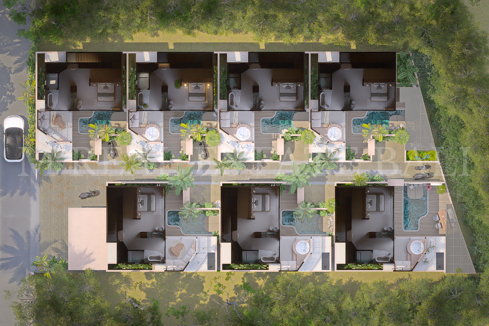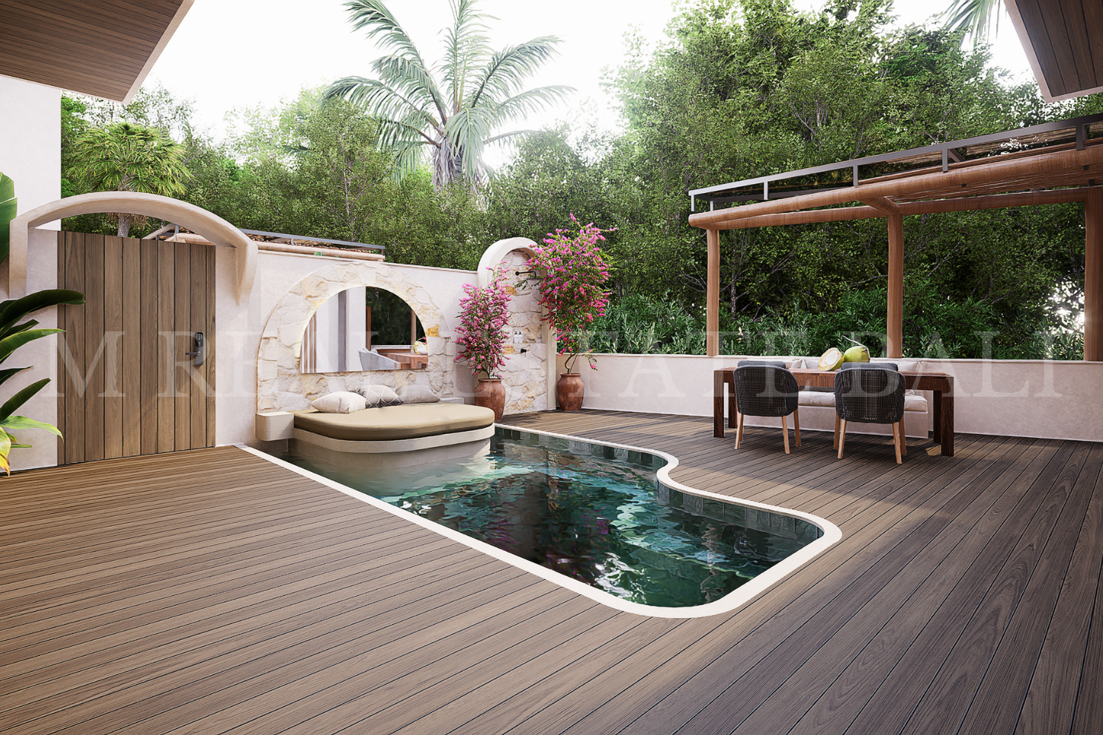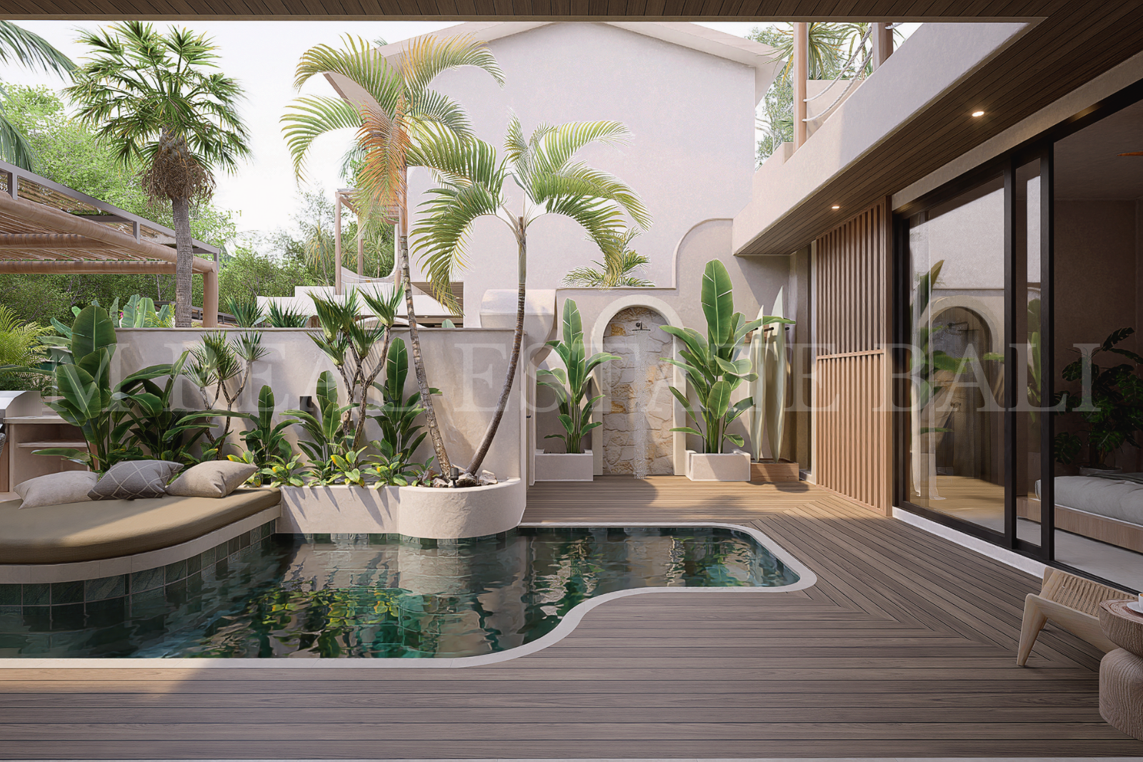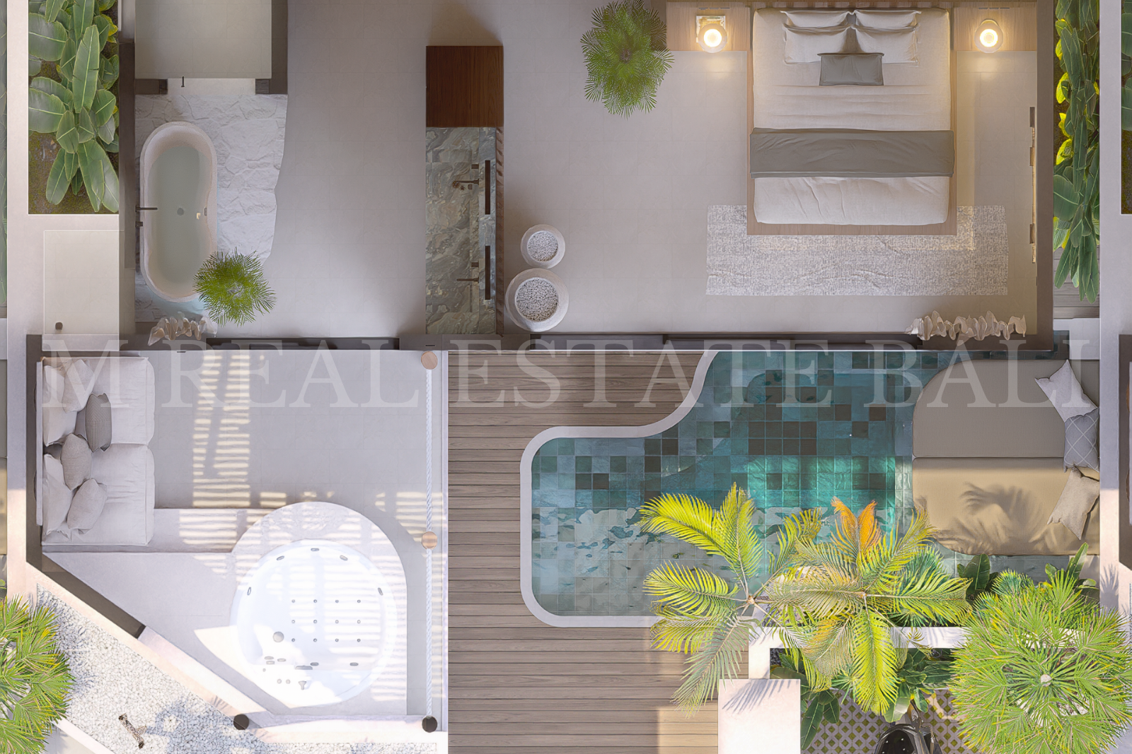 Private Pool & Tropical Outdoor Space: Enjoy your own private swimming pool, complete with a pool deck and lush tropical garden, offering a tranquil setting that blends indoor and outdoor living.
